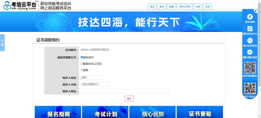 【证书领取】考培云&职业技能考试培训网上报名平台证书领取流程
