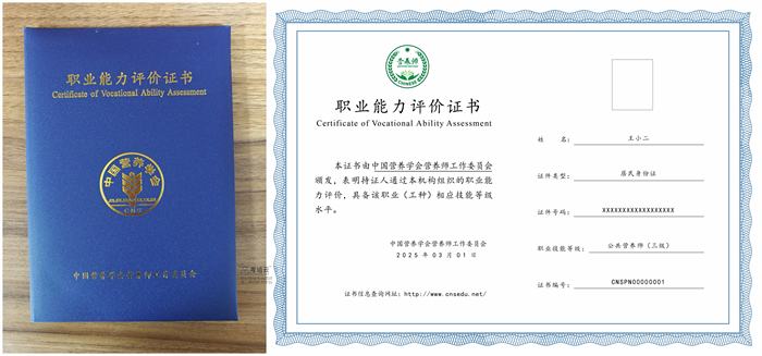 公共营养师证书是由中国营养学会颁发,该证书是持证人具备专业营养学知识和技能的有效凭证。它证明了持证人掌握了营养学基础理论、现代医学基础、食品安全等多方面的知识。在求职过程中,公共营养师证书具有很高的含金量,许多医院、健康管理公司、学校等机构在招聘营养师时,都会优先考虑持有证书的人员。此外,持有证书的公共营养师在为客户提供服务时,更容易获得客户的信任,能更好地开展工作。