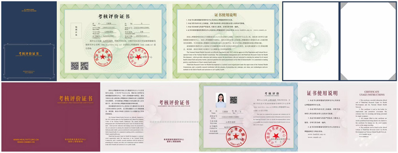 证书颁发考试合格者,由 “新探健康发展研究中心” 与 “国家心理健康网” 联合盖章颁发《心理咨询师考核评价证书》,证书无级别划分;证书分为大、小两个版本。证书查询:可登录新探健康发展研究中心官网或国家心理健康网查询。