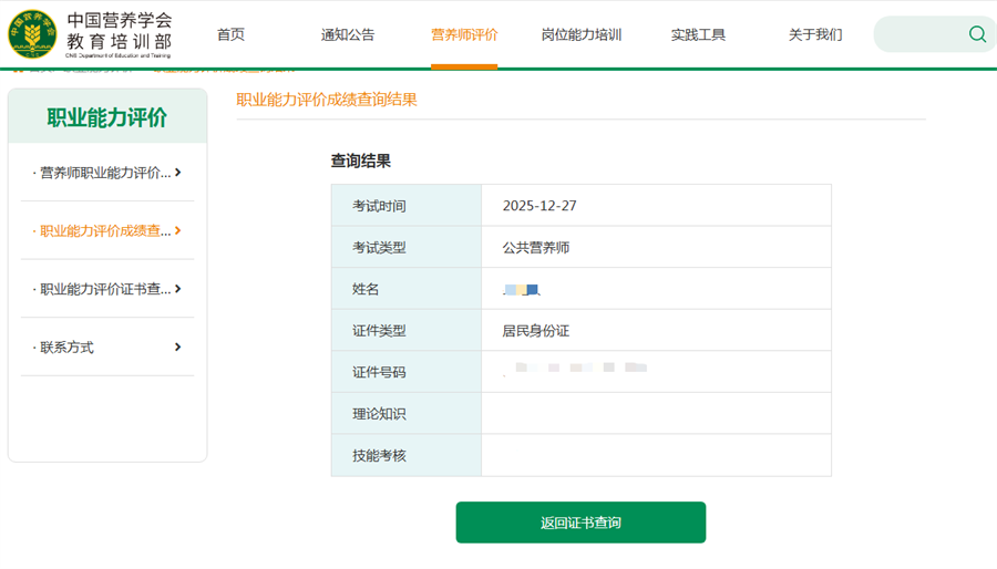 【成绩查询】中国营养学会:2025年12月27日公共营养师全国统一职业能力考试成绩查询通知及流程