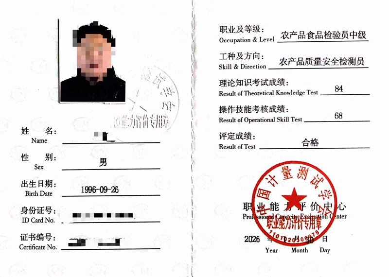 【证书领取】2026年1月中国计量测试学会:食品检验员、农产品质量安全检测员、粮油质量检验员、长度计量员、热工计量员、电学计量员、化学计量员、声学计量员、光学计量员、电离辐射计量员、力学计量员、无线电计量员、时间频率计量员、化学检验员、材料物理性能检验员、无损检测员、质检员、试验员、机动车检测工、环境监测员等职业能力证书领取通知
